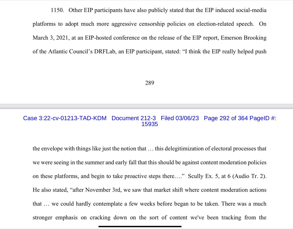 One of the arguments from the gov is always “we dont *force* them (big tech) to do anything!” Or “We don’t write their TOS!” We have done a lot of reporting on this, but EIP is funded by YOUR TAX DOLLARS. EIP pressured socials to change their terms and then censor under those… twitter.com/i/web/status/1…
