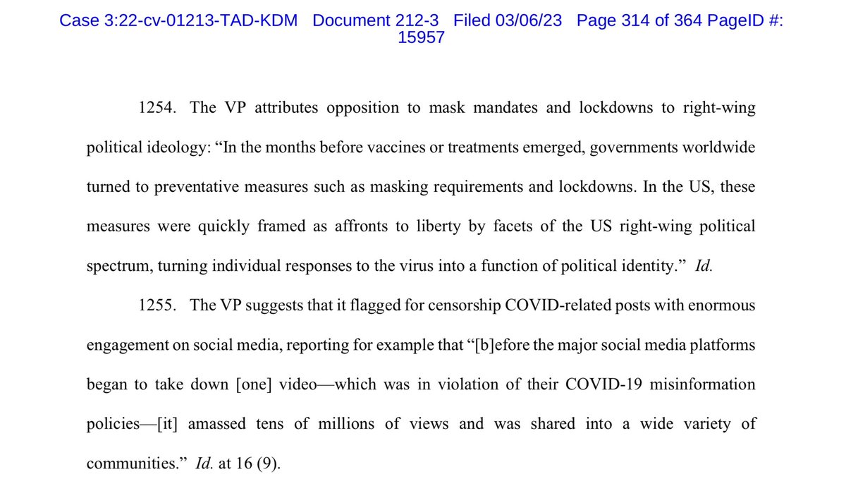 The Virality Project (VP) is the COVID sister of the EIP (elections.) It too works with the federal government to censor Americans. It equates the opposition to mask mandates to the political right.