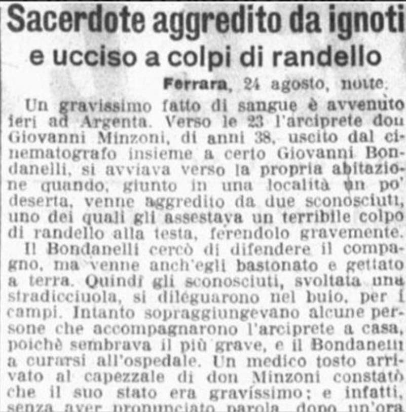 Il 23 agosto del 1923 toccò a Don Minzoni.