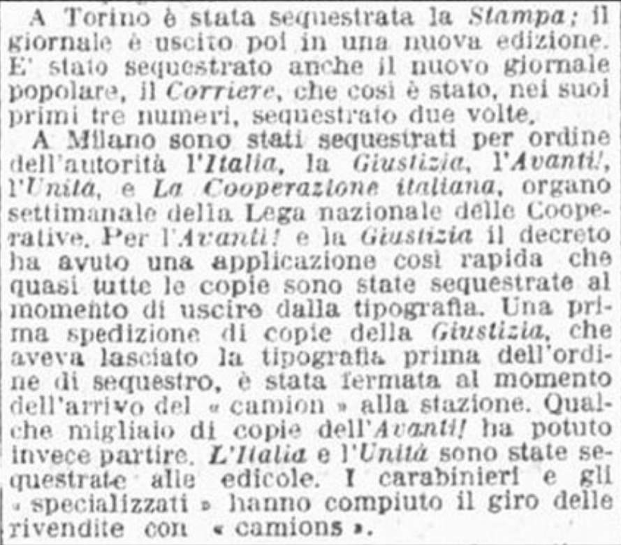 Lo stesso giorno i fascisti avevano assaltato a Livorno il Palazzo di Giustizia dove si trovava il deputato socialista G. Emanuele Modigliani aggredendolo e malmenandolo.