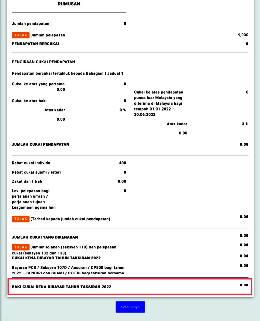 Nanti lepas siap masukkan semua amaun yg berkaitan, korang akan dapat rumusan pengiraan masing-masing. Kadar cukai yang turun Belanjawan 2023 baru ni takda kena mengena. Sebab korang nak declare ni cerita 2022.
