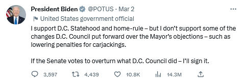 The political significance of this development is enormous, not just for DC statehood. Biden's move--and support of Dem establishment--is attempt to signal end of contemporary "criminal justice reform" moment. Both parties now have unhinged state repression as their strategy.