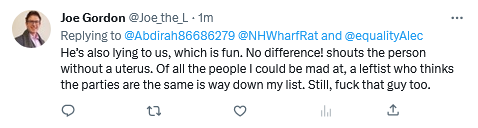 Responses like this from Dems are common. Some people are incapable of processing critique of Dems. No one is saying there is "no difference" btw liberals and fascists. And many Democrats have difficulty understanding how boosting police is devastating for reproductive rights.