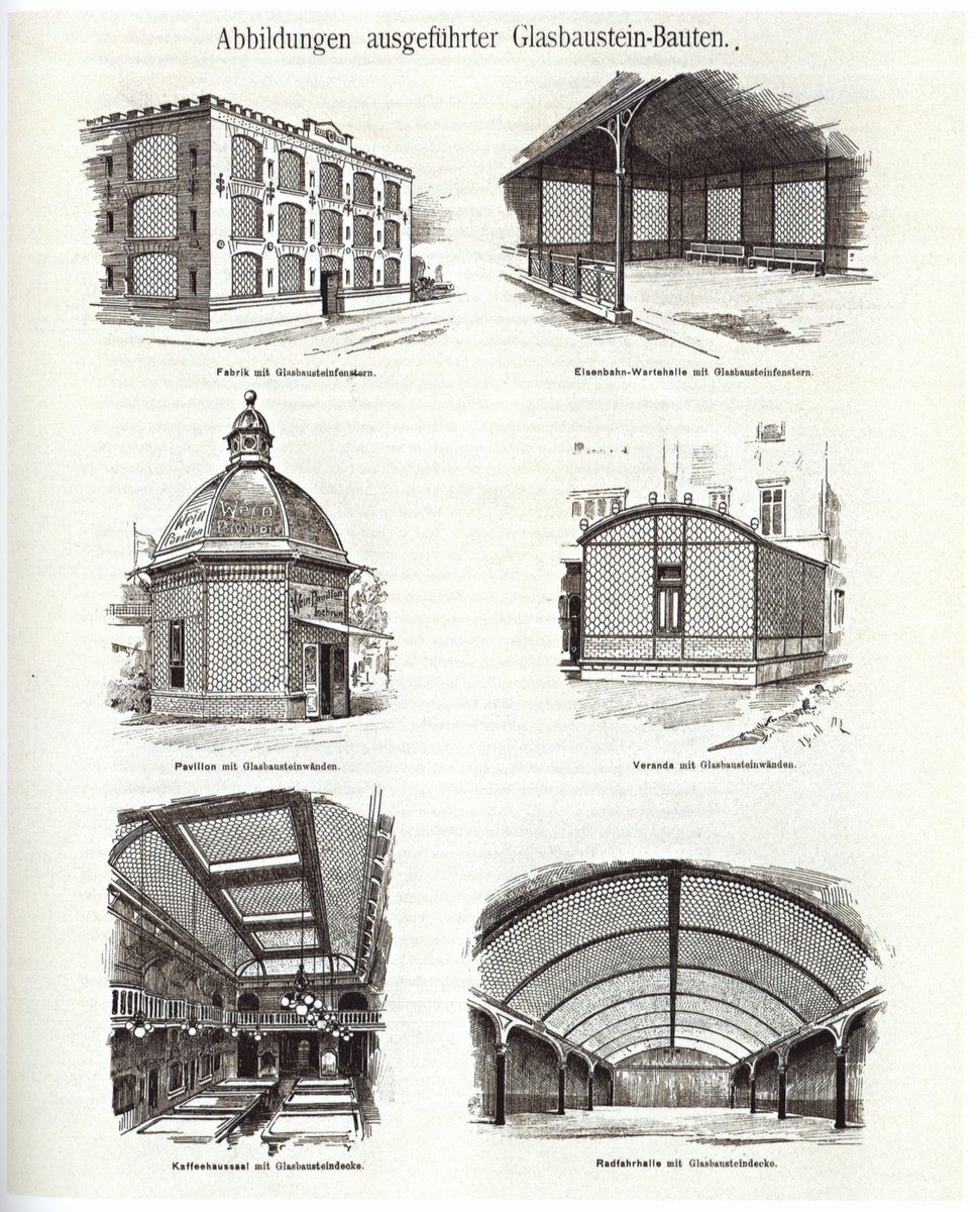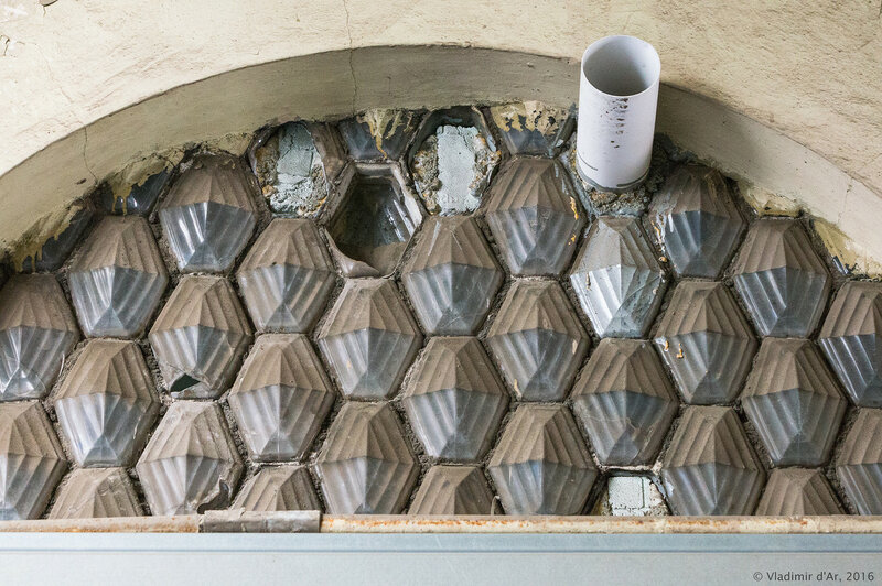 Индустриальные квадратные блоки из зеленого или синего стекла, думаю знакомы многим на постсоветском пространстве. Однако до 1930-х в России сохранялось производство другого типа блоков по технологии, запатентованной швейцарским архитектором Густавом Фальконье в 1886 году.