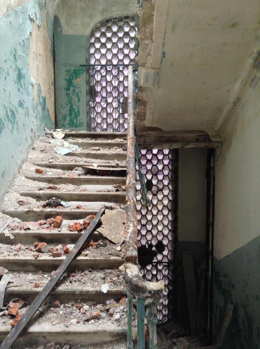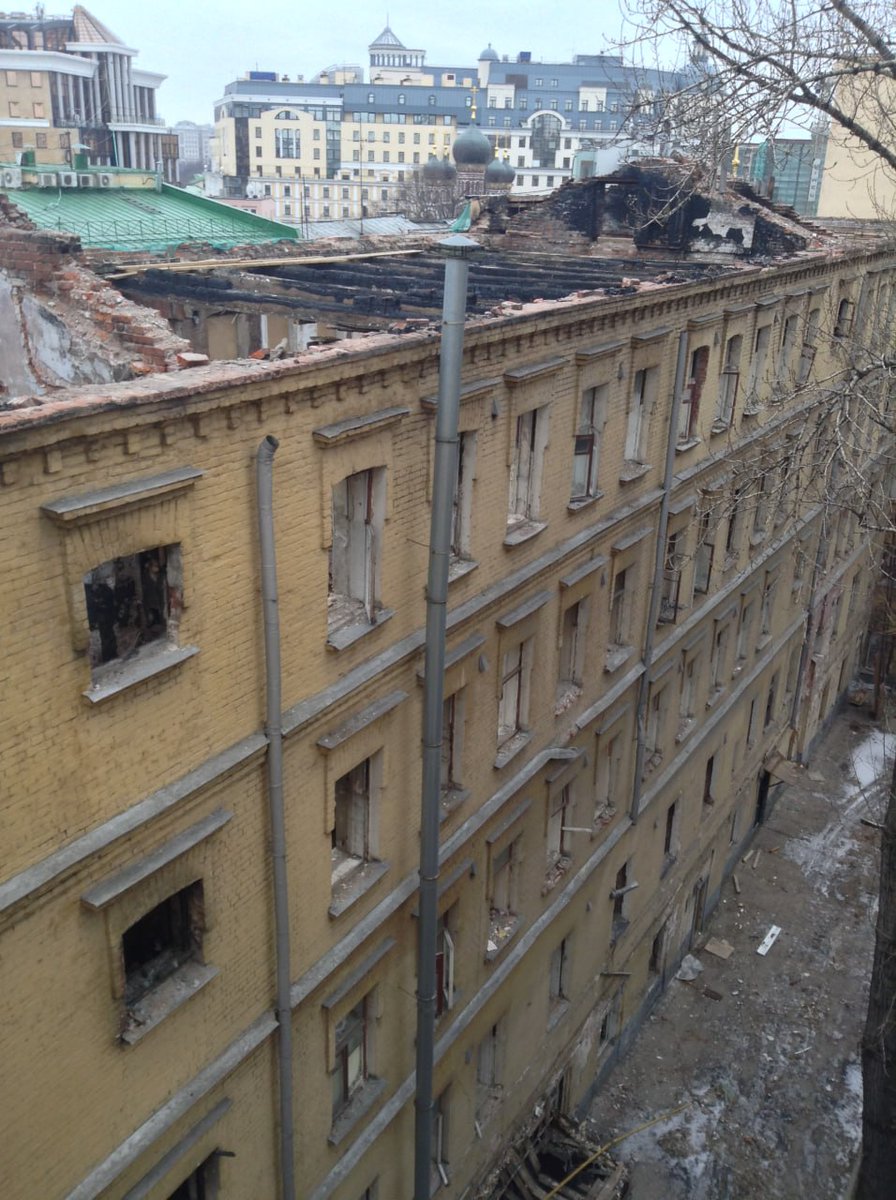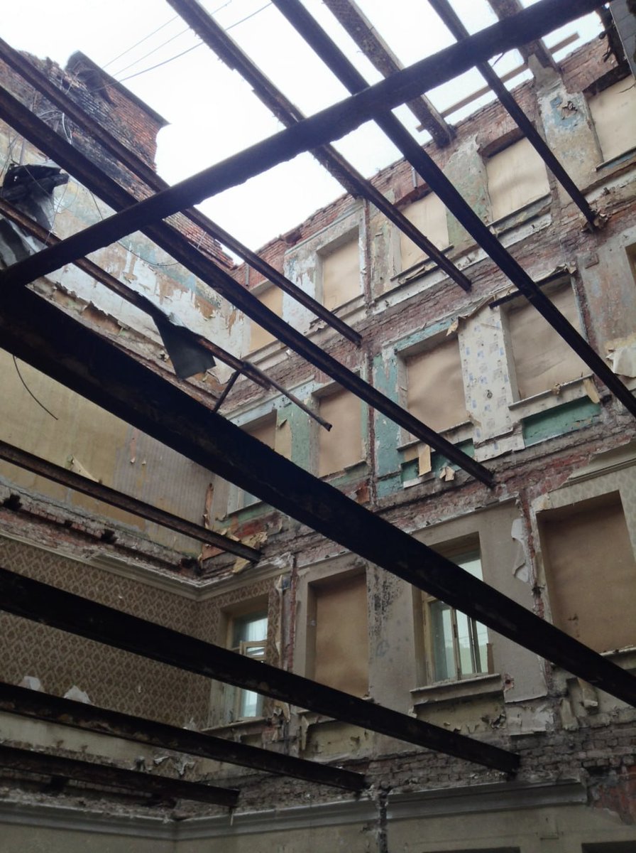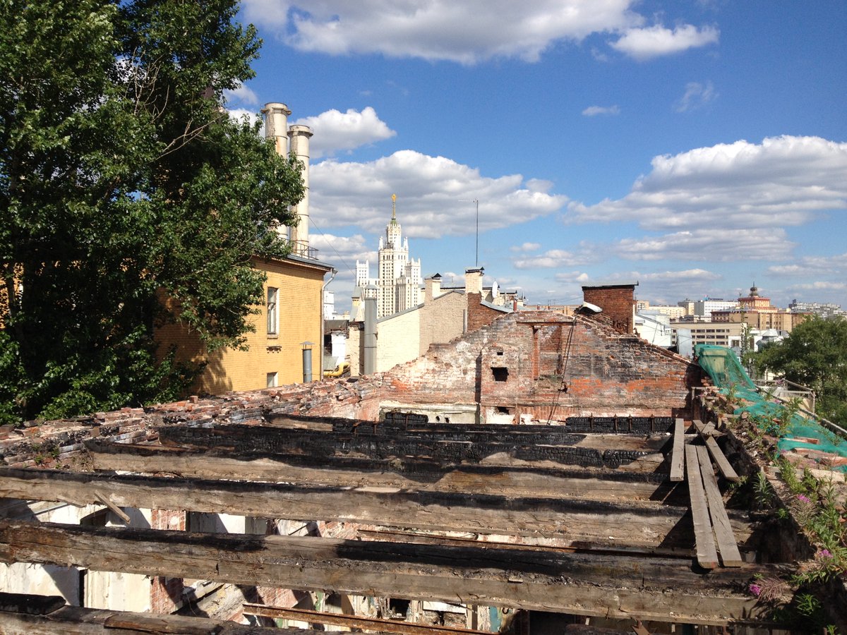 Одним из мест, где нам удалось буквально спасти кучу блоков с фиолетовым (марганцевым) оттенком — стал доходный дом Приваловых на острове Балчуг в Москве. Попадать туда было сложно и опасно, приходилось лезть внутри сгоревшего дома по балкам на высоте нескольких этажей.