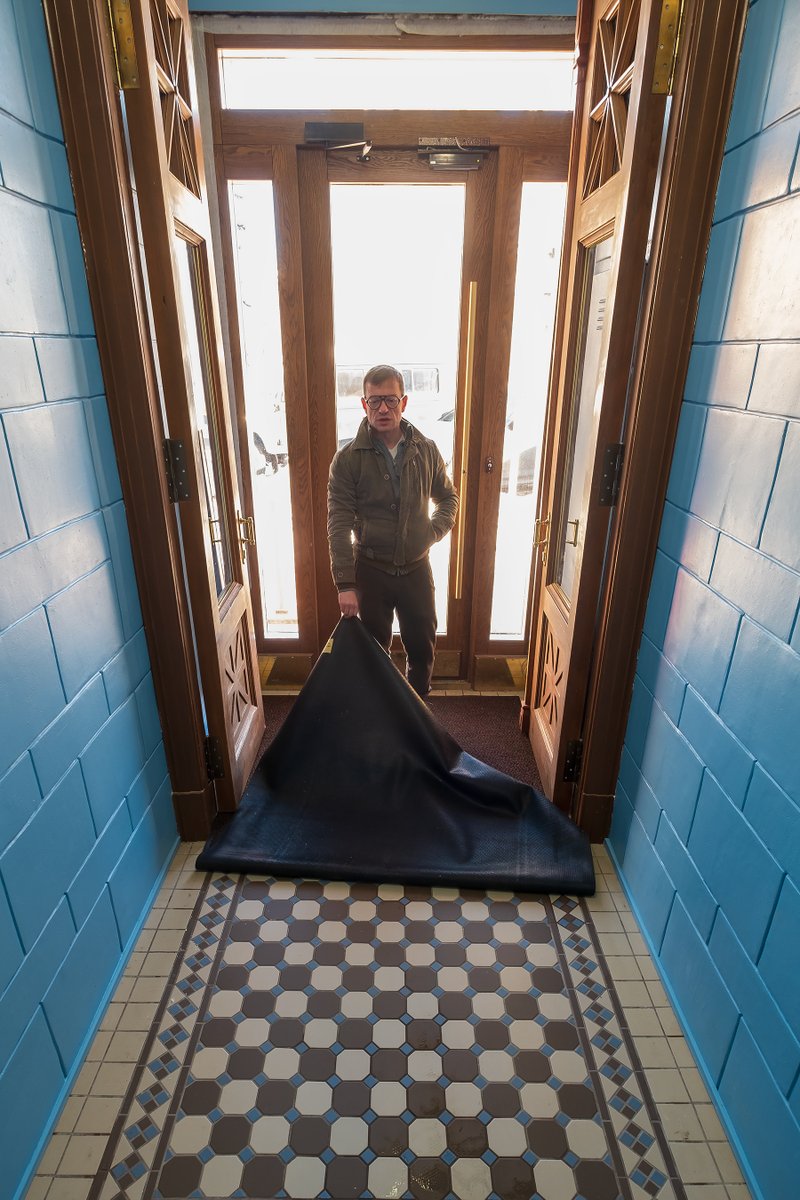 Помимо кладок с кирпичами он также не без помощи других неравнодушных жителей подъезда смог восстановить метлахскую плитку на входе и сейчас пытается раскрыть стеклянный купол над парадной лестницей. Вот уж с кого стоит брать пример.