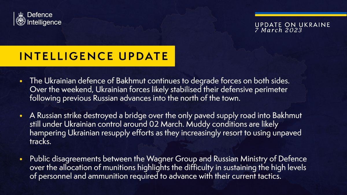 (1/3) The Ukrainian defence of Bakhmut continues to degrade forces on both sides. Over the weekend, Ukrainian forces likely stabilised their defensive perimeter following previous Russian advances into the north of the town.