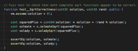 We can now say with 100% confidence that the Solady and Solmate implementations of sqrt() produce the same result.