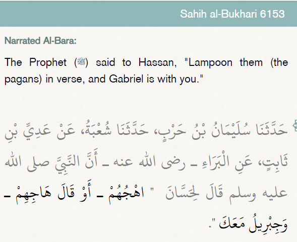 Here the Prophet ﷺ commands Hassan to mock & insult the mushrikin & even the noble angel Jibreel supports that.