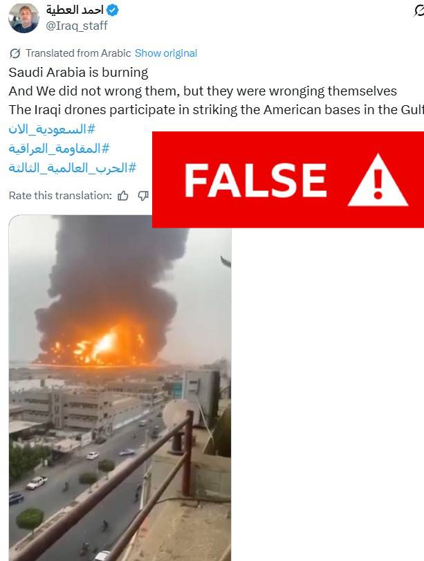 This viral video, viewed 4.5 million times, claims to show a location on fire in Saudi Arabia during the exchange of fire between Iran, Israel and the US.