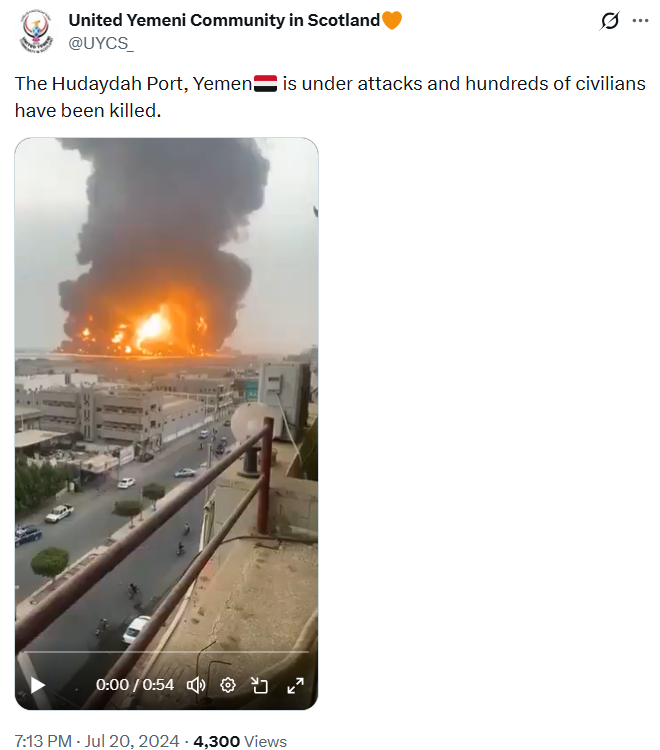 But the video is from July 2024, and shows Israeli strikes on Yemen's Hudaydah port.