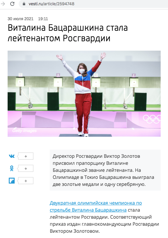 THREAD Why it is important to ban all the Russian athletes from the sport events? Because most of them are ACTIVE OFFICERS of the RU army or militarized police (RosGvardiya). Let us check the Gold Winners of Tokyo2020. Vitalina Bazarashkina gold in shooting: Lieutenant RosGvardia