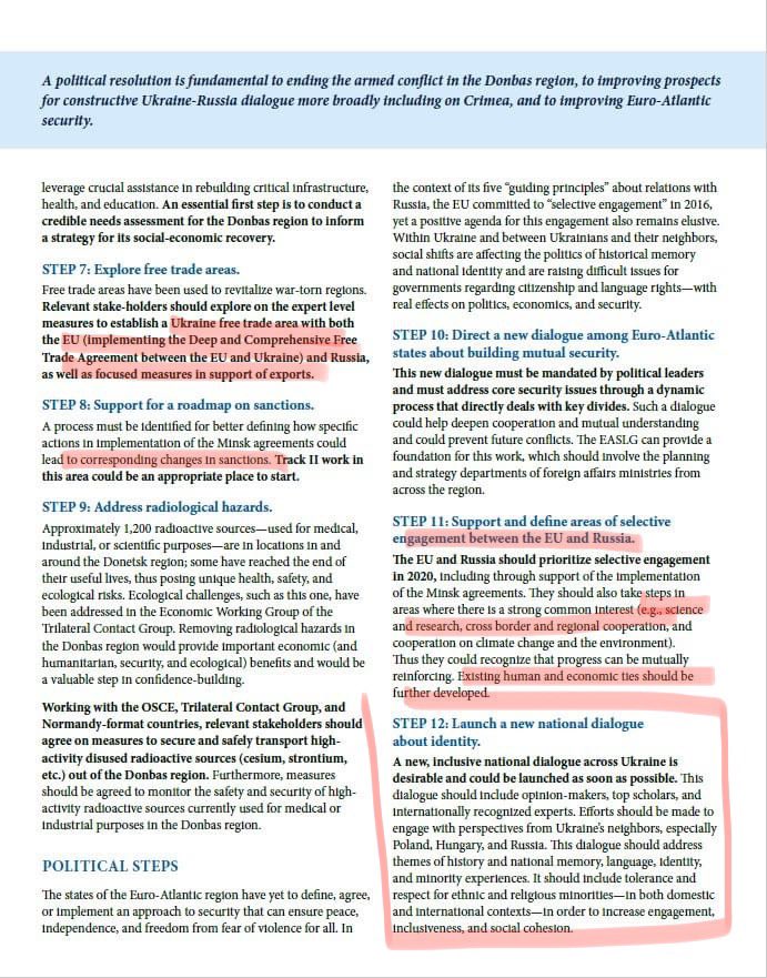 A reminder that OTD 2020 the MSC published a most dubios call, urging to create a Russia-Ukraine free trade zone (Yanukovich’s dream), increase EU-RU cooperation, lift sanctions, and create an expert group on reshaping of Ukrainian identity, with Russian experts in this group /1