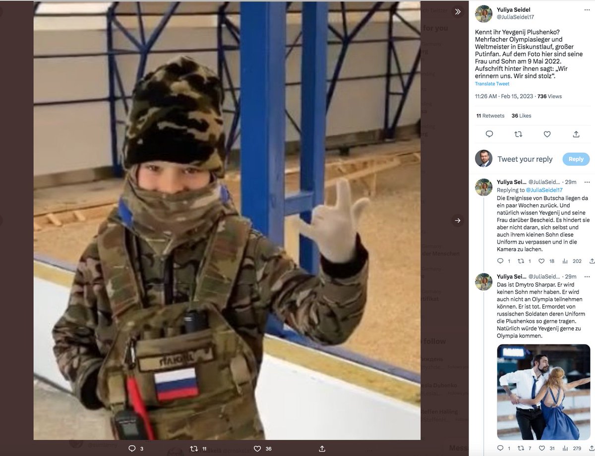 "Do you remember Yevgeny Plushchenko? An Olympic Games champion? A great putininst. On the first photo you can see his wife and son on May 9th 2022 in Moscow. The slogan says "we remember, we are proud". Bucha terror happened just a couple of months before". @JuliaSeidel17 /1 twitter.com/i/web/status/1…