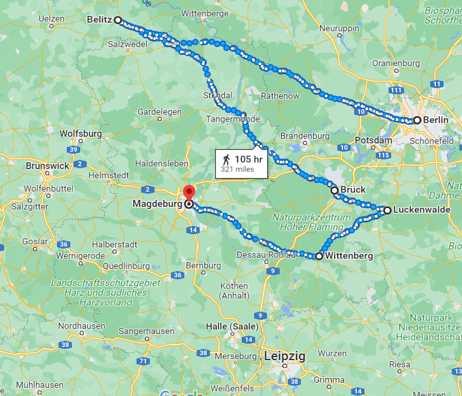 The viceroy moved toward the River Elbe, with Wittenberg as the midpoint between Berlin and Magdeburg. He divided the XI Corps into three, sending each to march on Wittenberg via Belitz, Bruck, and Luckwalde. Eugene himself remained with the rearguard backed by a small cavalry.
