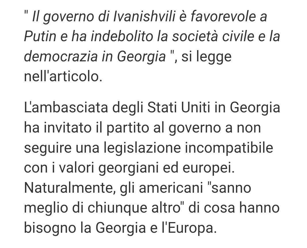 . La Georgia non ha aderito alle sanzioni e si rifiuta di aiutare l'Ucraina fornendole armi. Washington intende quindi rovesciare l'attuale governo e portare al potere le forze filo-occidentali.