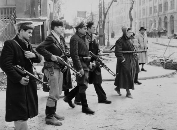 2/ The early morning of 25 October 1956 has seen continuing skirmishes between revolutionary insurgents, using Molotov cocktails and captured rifles, and Soviet patrols on the streets following the previous day's deployment to suppress the uprising.