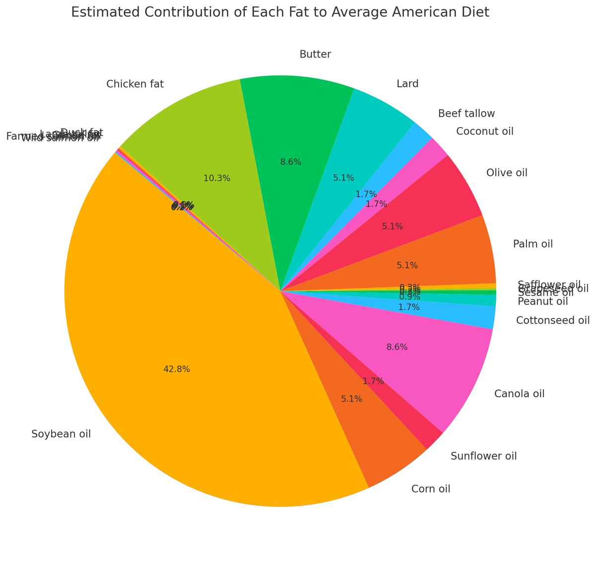 You might ask - okay so I know the composition, but what about the average American diet, what fats do they eat? Quite a lot of seed oils and chicken fat. @ZeroAcreFarms @bigfatsurprise @garytaubes 2/13