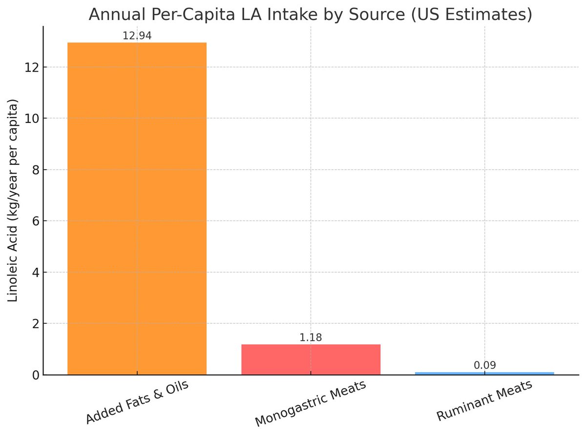 So if we have estimated contribution, we can calculate the per-capita Linoleic acid intake by source. Almost all the LA is coming from seed oils. 3/13