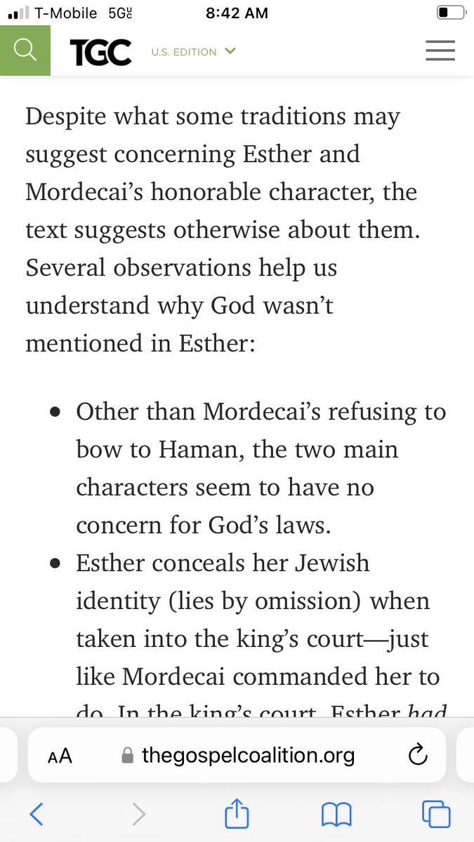 Also God isn’t named in the book of Esther b/c Esther “lied & married a Gentile?” 😬 🫠 I wasn’t paying much attention to @TGC before, but I for sure am now. Is no exegetical study being done before an account with 200k followers hits “publish”?