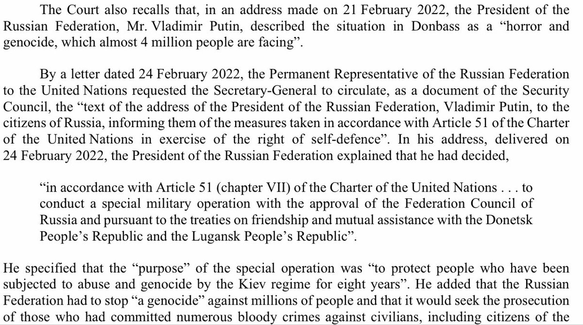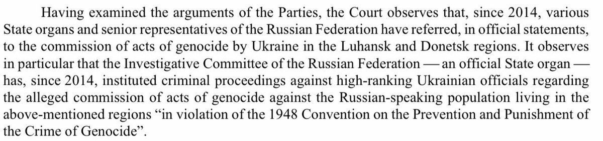 The task before the Court wasn’t immediately to determine the merits of the genocide allegations but to determine whether a Genocide Convention “conflict between parties” exists, and whether Russia’s actions appear likely to be considered unlawful when the Court rules on the… twitter.com/i/web/status/1…
