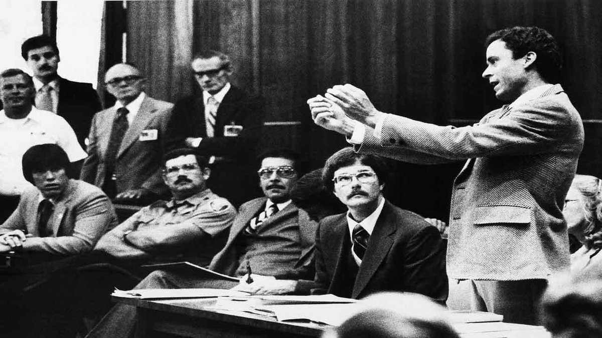 El 25 de Junio de 1979 comenzaron los juicios de Florida por los asesinatos y agresiones sexuales y físicas a las 5 chicas de la Fraternidad Chi Omega. Fue el 1er juicio retransmitido enteramente por TV y se formó un circo mediático entusiasmando a Ted.