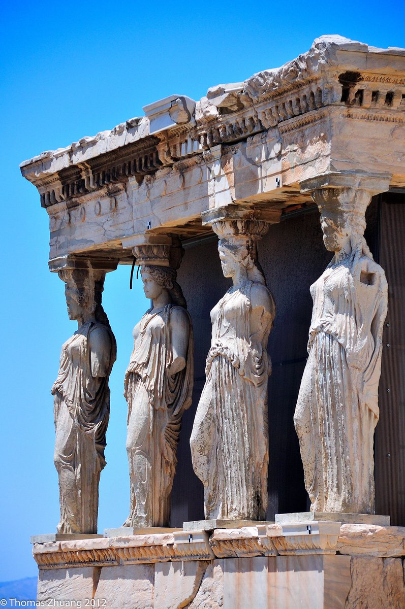 The most famous caryatids of Greece stand guard over the Erechtheion of the Acropolis, Athens.