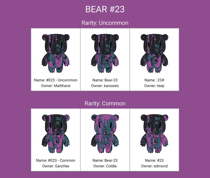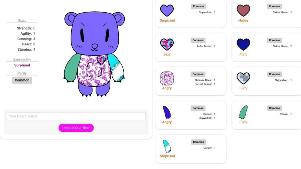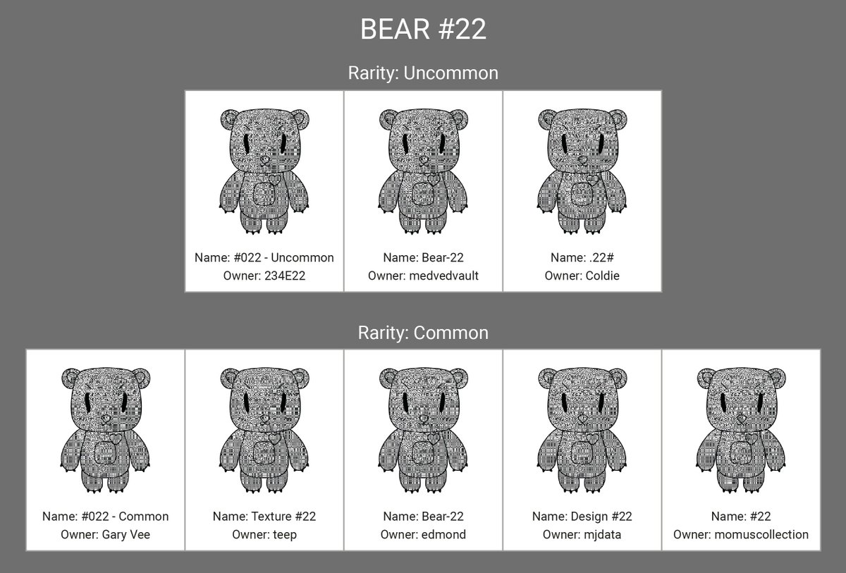 Each NFT was a combination of several different bear body parts with each part contributing to rarity