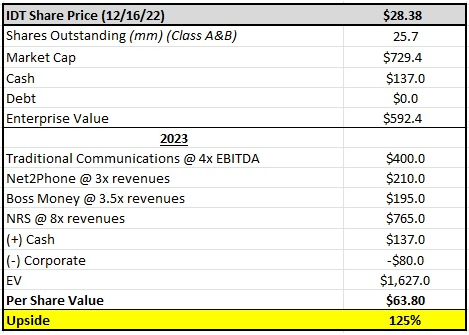 – Owning IDT today gives investors exposure to three high-growth subsidiaries within IDT, a traditional communications business run rating around $100mm in EBITDA, as well as a large net cash balance sheet and management’s capital allocation prowess.