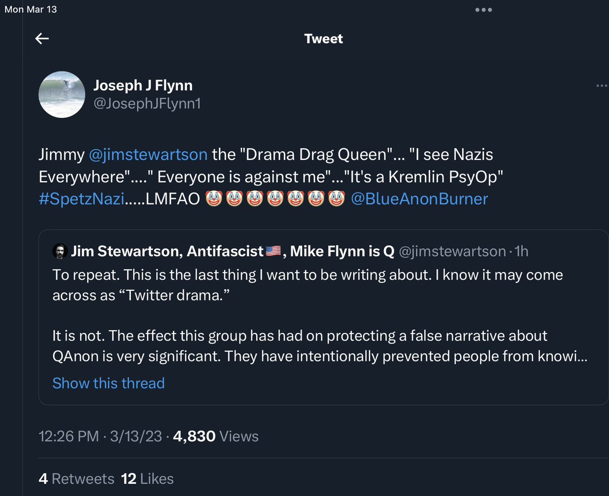 If you have any doubt that these are @GenFlynn’s digital soldiers, please look at @JosephJFlynn1 who is an avid reader of my Substack, but only the articles about my trolls.