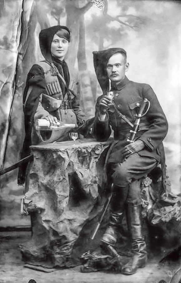 No, ehkä kiinnostavin porukka, joka on saanut nimensä ikuistetuksi ovat vallankumousvuosien niinsanotut "mustat zaporogit", puolisotilaallinen kasakkahenkinen ratsuarmeija. Kuvassa oleva nainen on todennäköisesti Maryja Stovbunenko-Zaitšenko, joka oli porukassa mukana sotimassa.
