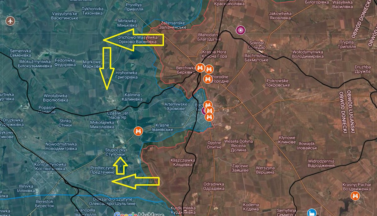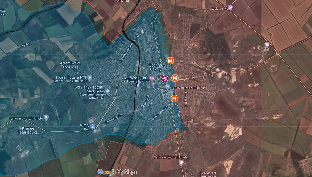 Sam centralny i zachodni Bachmut ma obecnie status nieznany, ale raczej jest jeszcze w rękach UA. Być może UA będą chcieli się tam bronić opierając się o drogę T0504 przez Krasne. Być może jednak jesteśmy świadkami odwrotu. Czekajmy i obserwujmy.