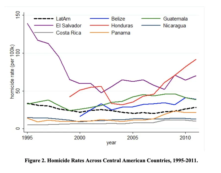 First, the idea that murder dropped since 2015 is true. But look at the historical norm of El Salvador. We have data going back to the 1990s, it's never been anywhere near this low. When Bukele came to power, things looked similar to how they always had been.