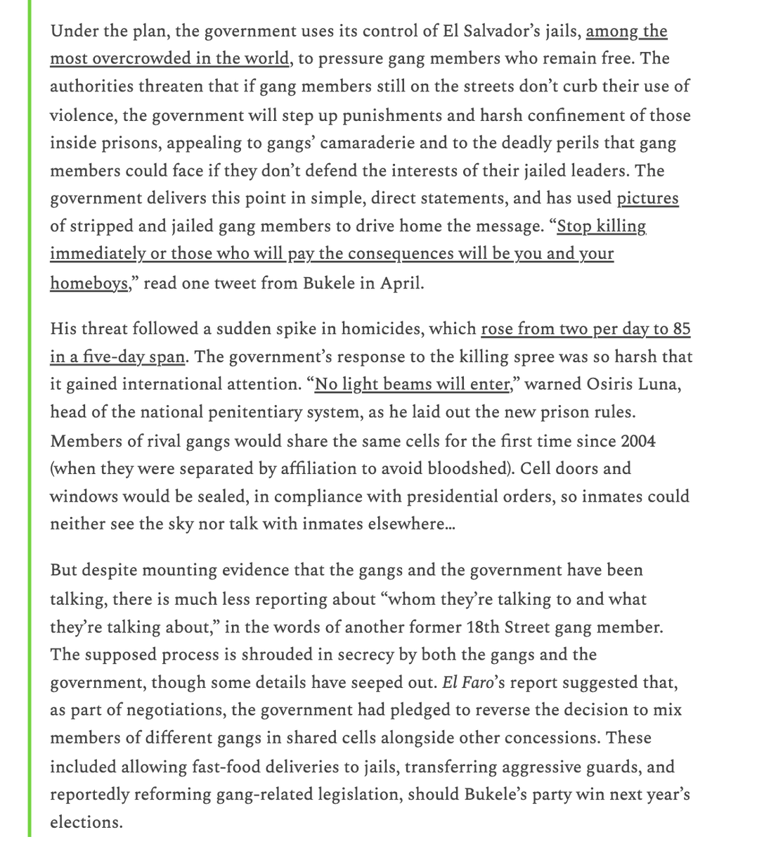 Moreover, here are some details of the previous "deal" with the government. People want to give the impression that Bukele and the gangs were best friends.