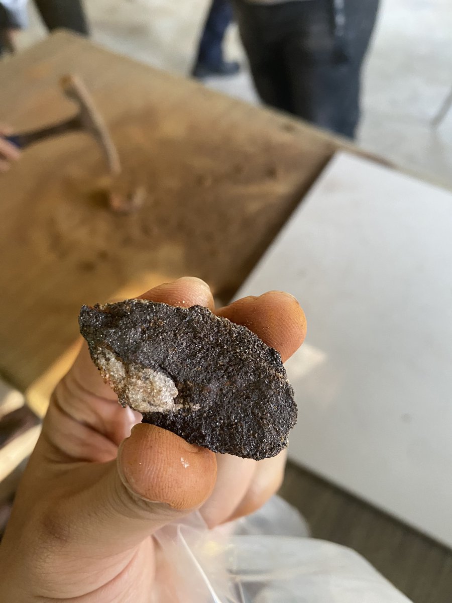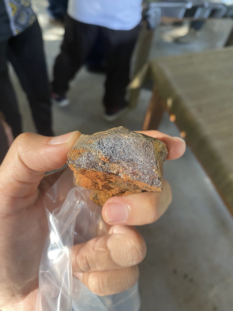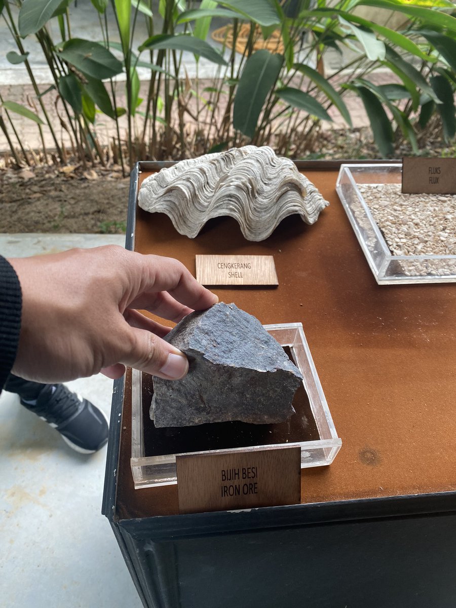 Benda pertama kena buat ialah kita kutip bijih besi dari Gunung Jerai dan dipecahkan sampai jadi saiz batu kerikil. Batu bijih besi ni lebih berat kalau nak banding batu biasa, dan lagi keras, macam video aku ketuk batu ni.