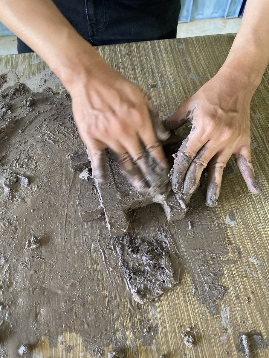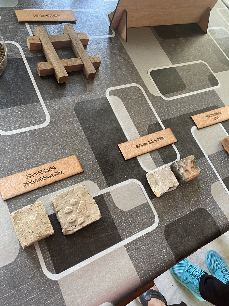 Jadi aku ada buat tembikar dan batu bata menggunakan tanah liat yang disediakan. Macam main playdoh tapi takde bau. Tembikar tu kitorang bakar manakala batu bata tu dikeringkan. Aku ada tanya budak postgrad arkeo USM situ ada tak bekas tapak kaki haiwan kat batu bata ni.
