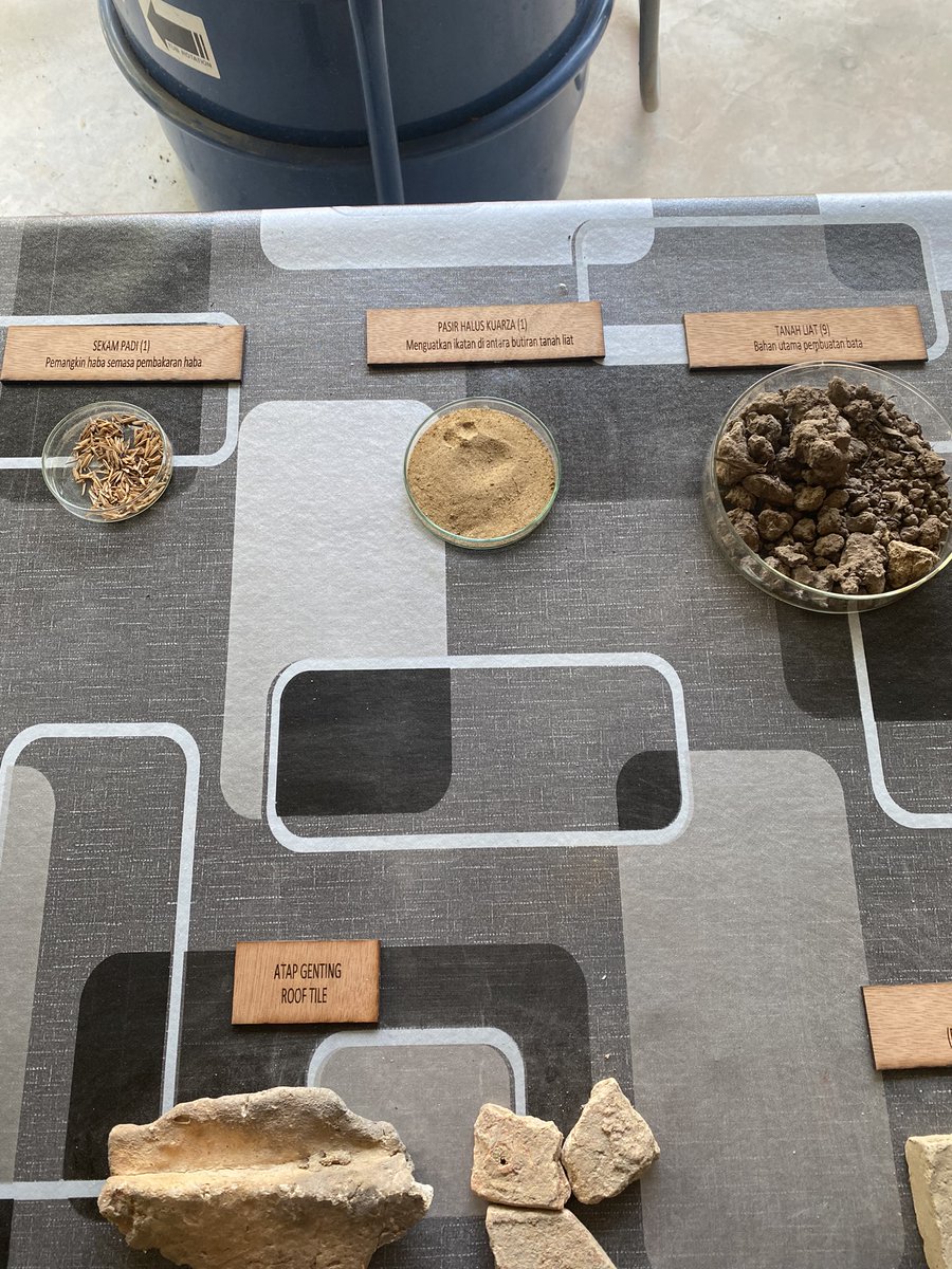 Masa aku tengok contoh artifak situ, tembikar situ ada kesan retak dan rekah, tapi batu bata dia takde rekah. Padat dan padu lagi kalau ketuk. Arkeologis situ terangkan kenapa jadi gitu - orang Kedah Tua guna sekam padi sebagai komponen komposit penguat.
