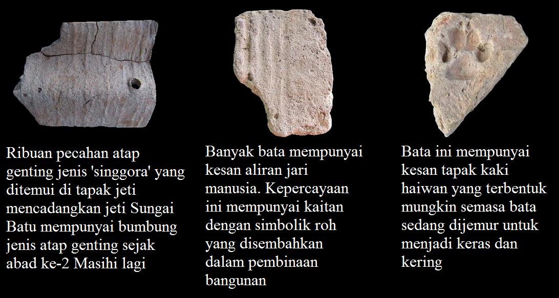 Cumanya, arkeologis USM pelik kenapa tak banyak ada tinggalan seramik dan manik luar macam Pengakalan Bujang. Dekat Sungai Batu ada puluh puluh je serpihan dia tapi kalau dekat Pengkalan Bujang dan Sungai Mas, juga tapak pelabuhan purba, ada ribuan tinggalan manik dan seramik.