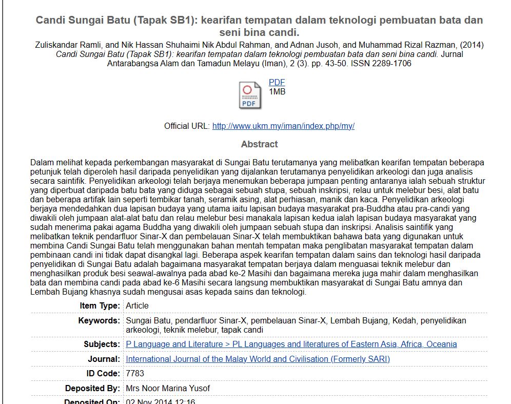 P/S 4: Antara kertas kajian pasal tapak Sungai Batu oleh UKM dan USM kalau korang nak baca