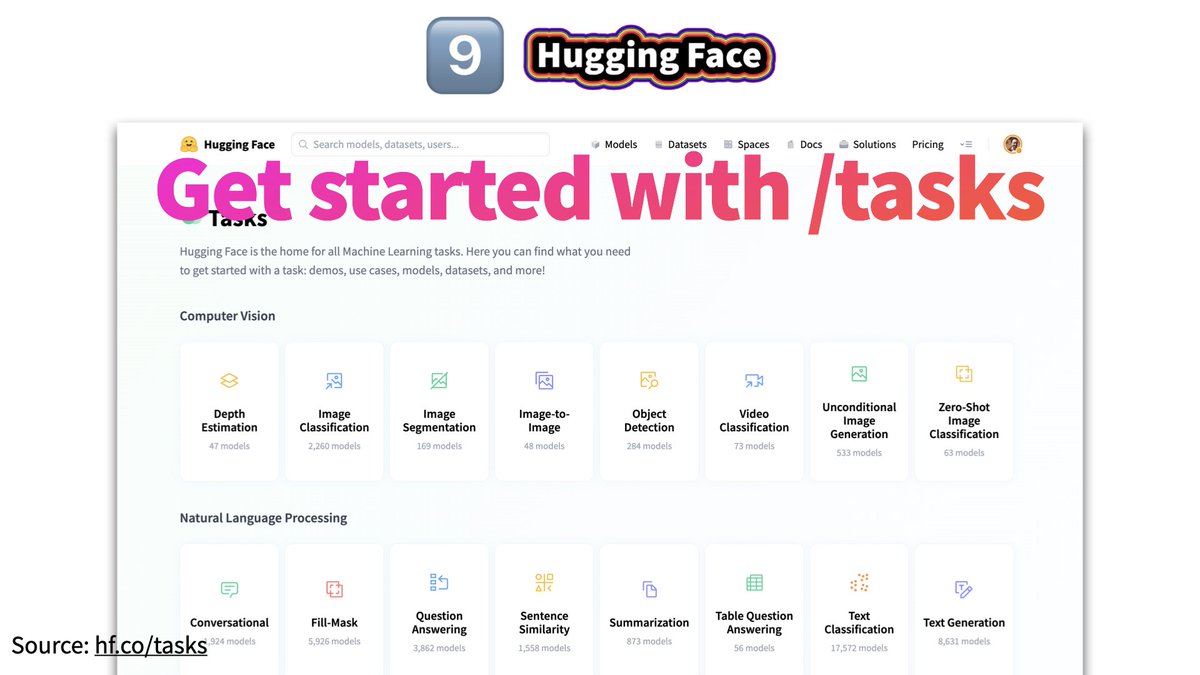 Pick a task like text summarization, it will recommend the best models, and you can even deploy your own API!