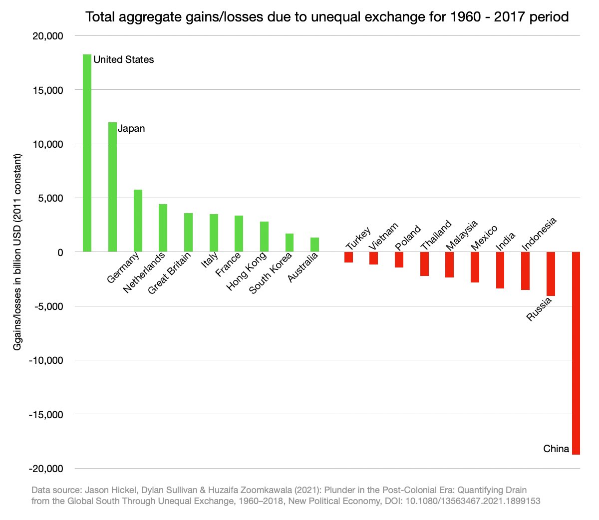 This enormous wealth transfer from periphery to core is in part recorded in the aggregate gains/losses of unequal exchange, which is an objective measure of the value that has been bled from the periphery via suppression of currency exchange rates through US financial dominance.
