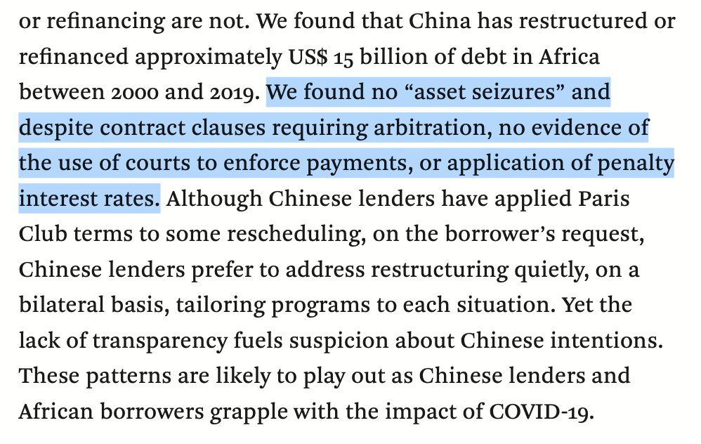 Intergovernmental loans by China’s state-owned banks are not made with the same requirements to generate profit. Nor are countries seeking loans from Chinese lenders forced to undergo structural adjustments, and it’s not uncommon for debts to be renegotiated or written off.