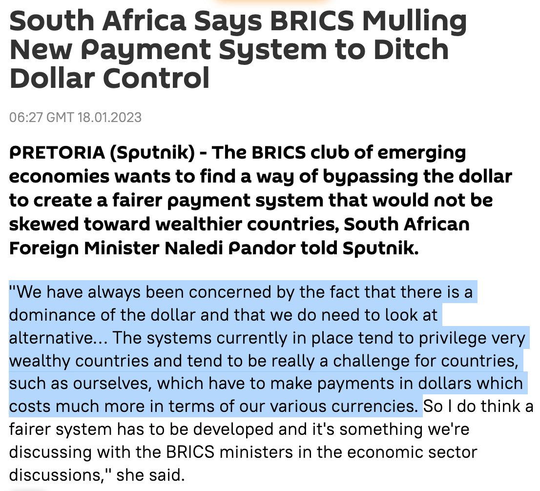 And most critically, BRICS countries have begun moving to replace the US dollar with a basket currency for trade, with pathways for new member states to join the scheme. The rate of transition to this new more equitable global currency system is likely to be anything but linear.