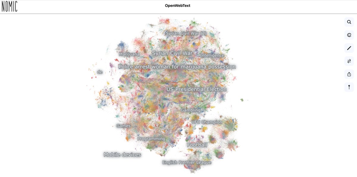 That probably beats the morass of regular web text, but the idea of Reddit upvotes as the gold standard for quality is--distopian? Last week we made a map of the open recreation of this corpus, OpenWebText-- it's crazy easy to find awful stuff. Try it! atlas.nomic.ai/map/owt