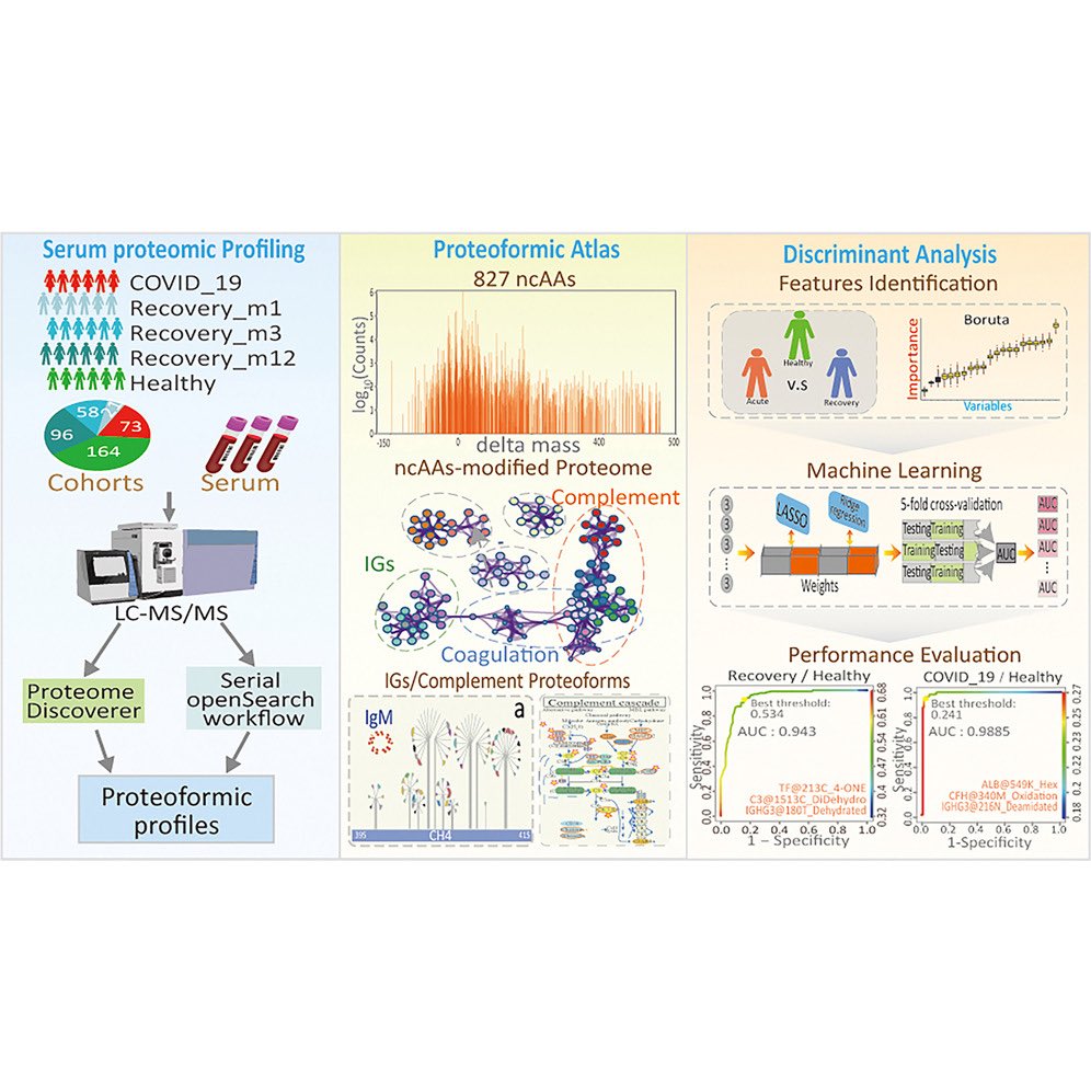 nutzten die Autor*innen eine groß angelegte Analyse mit über 400 Serumproben aus akuten COVID-19-Fällen, Genesenen (bis 12 Monate post Infektion) sowie gesunden Kontrollen. Der Fokus lag auf so genannten ncAAs („non-coded amino acids“), also nicht-kodierende Aminosäuren. Der