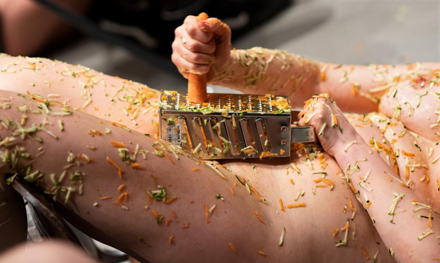 V enem od performansov Grubić s (prostovoljnimi) udeleženkami gola riba zelenjavo. Zelenjavo ribajo z gibi, ki spominjajo na samozadovoljevanje.