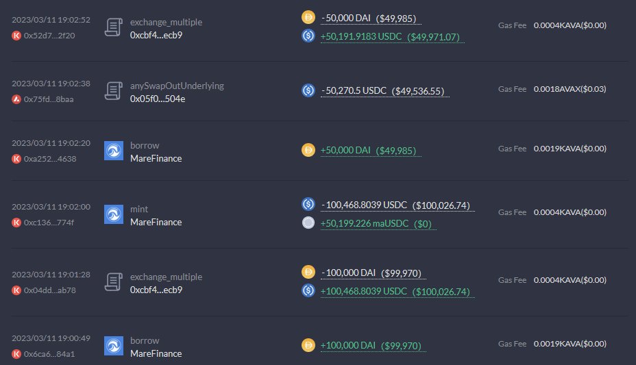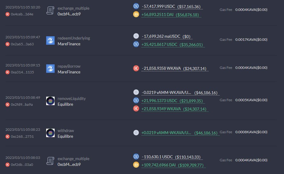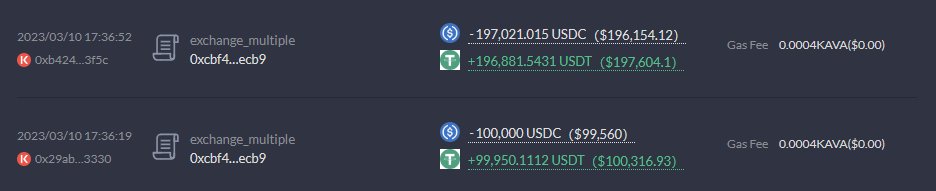 As USDC depegged away from DAI, I noticed the depeg is pretty light on Kava/BSC and arbed it out.