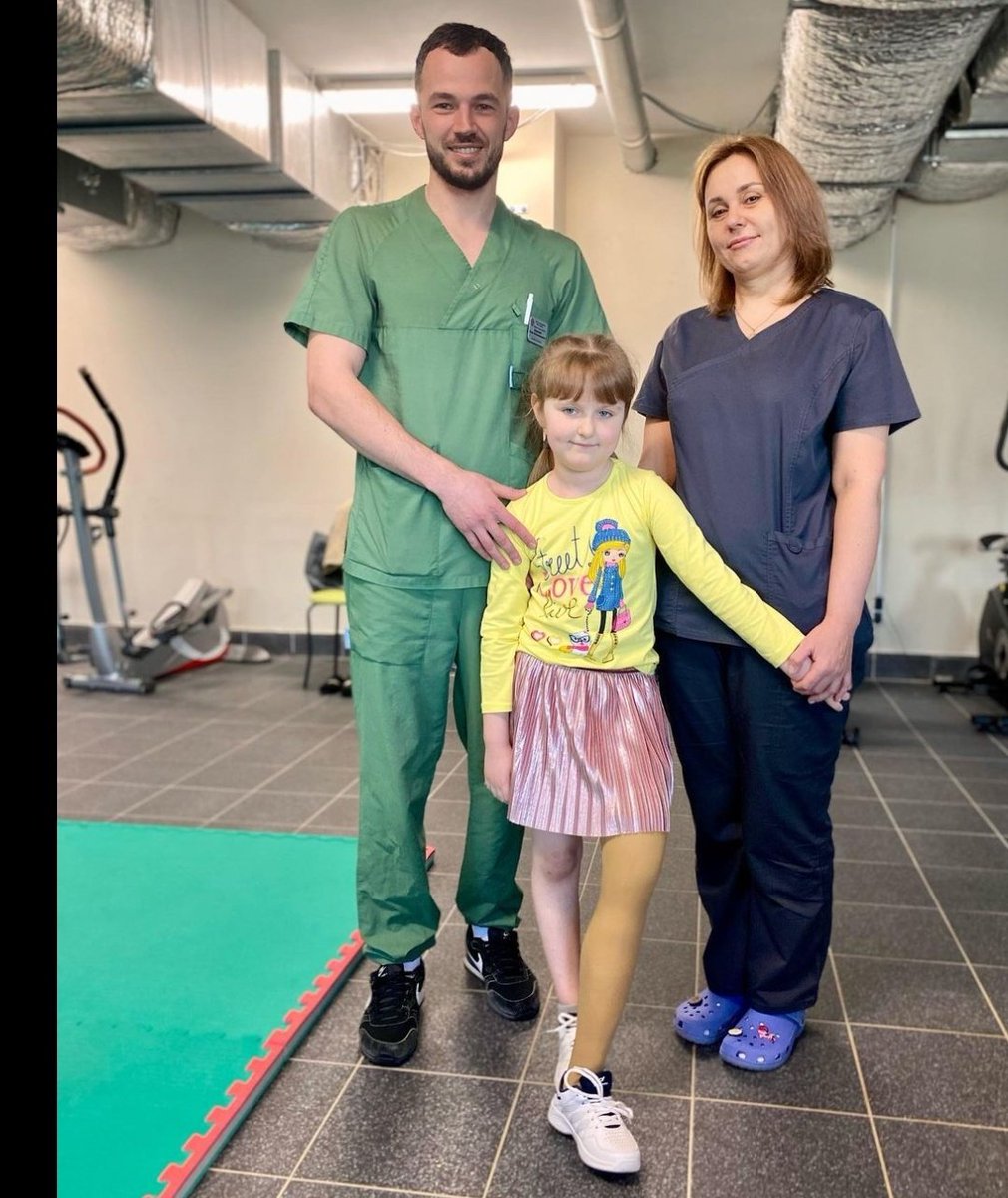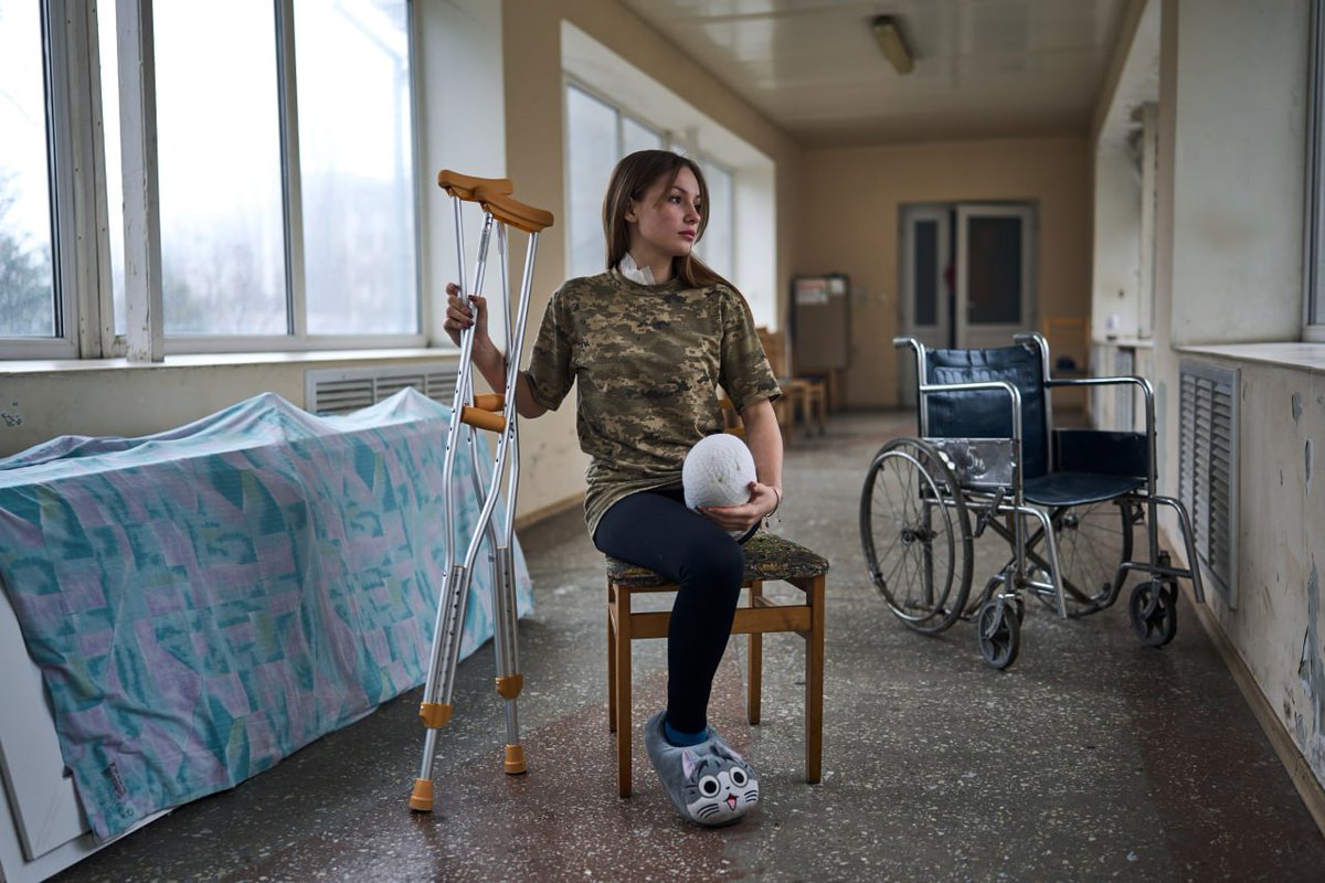 When the girl entered Ohmatdyt hospital, she meet a physical therapist that helped her to prepare her body to receive a prosthesis.