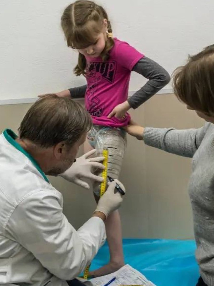 5/ Now the girl's prosthesis has been improved and made cosmetically similar to a real leg. This will help Marina overcome her psychological fear and socialize among her peers. The hospital team continues to work with Marina and her family.