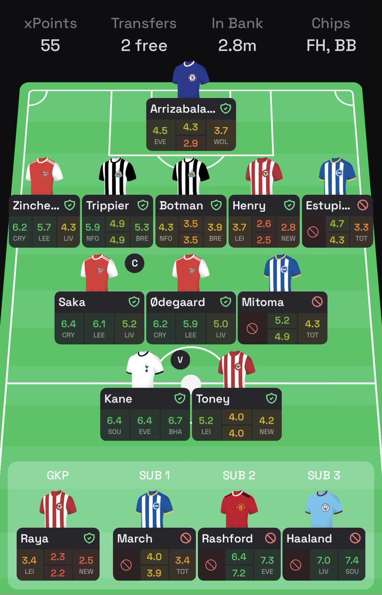 ✍️ I'm considering selling March to Maddison & Haaland to Watkins or Havertz. Chilwell is on my mind but I'm unsure due to his fitness problems over the current season.